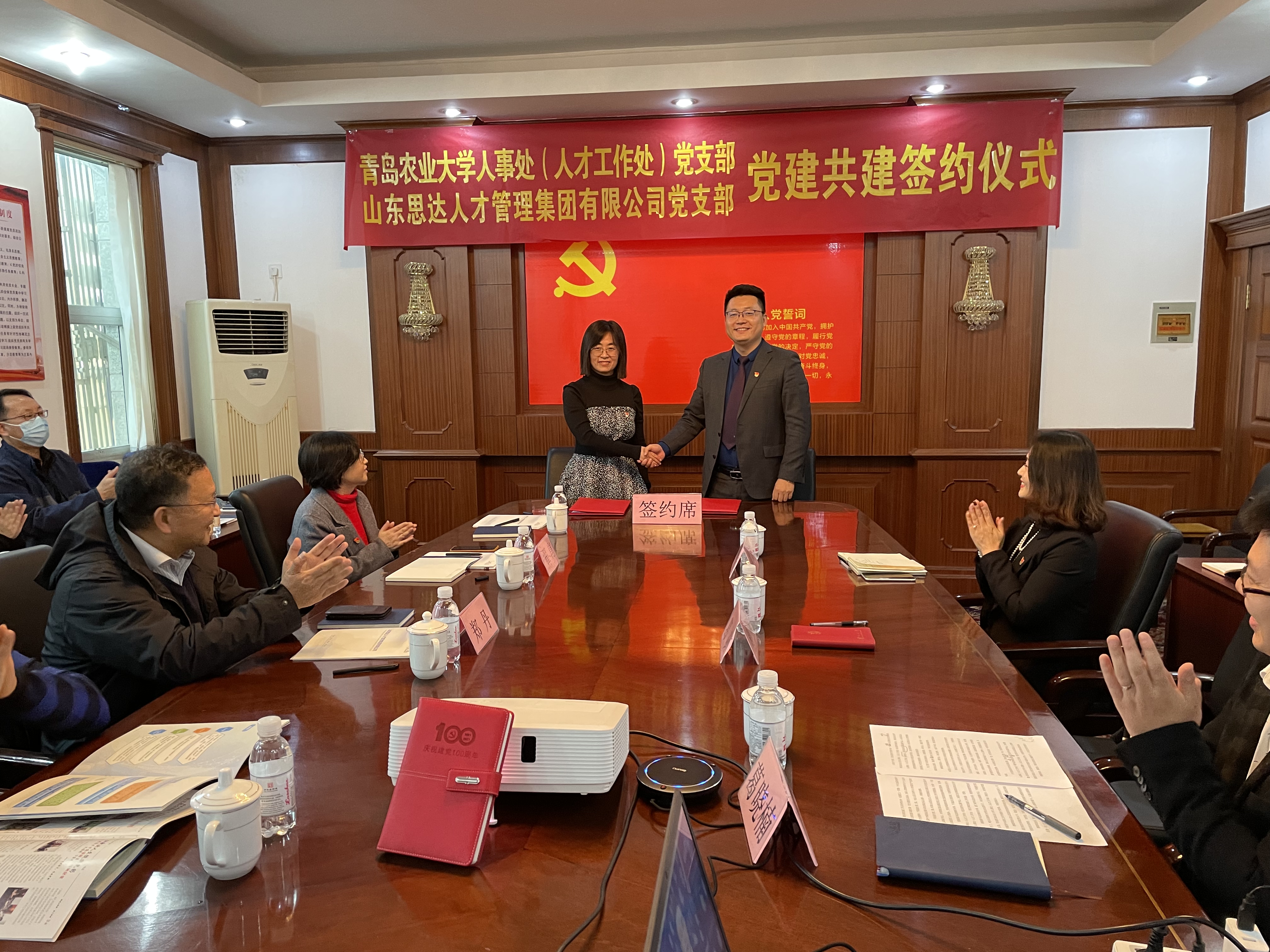 yl8cc永利官网(人才工作处)党支部与山东思达人才管理集团有限公司党支部举行了党建共建签约仪式。双方共同学习了党的十九届六中全会公报。山东思达人才管理集团有限公司党支部书记、总经理葛斌以“强合作,防风险,促提升”为主题介绍了思达集团党建工作和人才服务情况。yl8cc永利官网(人才工作处)党支部书记翟崑以“抓党建、聚人才、促发展”为主题介绍了支部党建工作经验。双方就人才管理服务相关案例和问题进行了深入探讨。