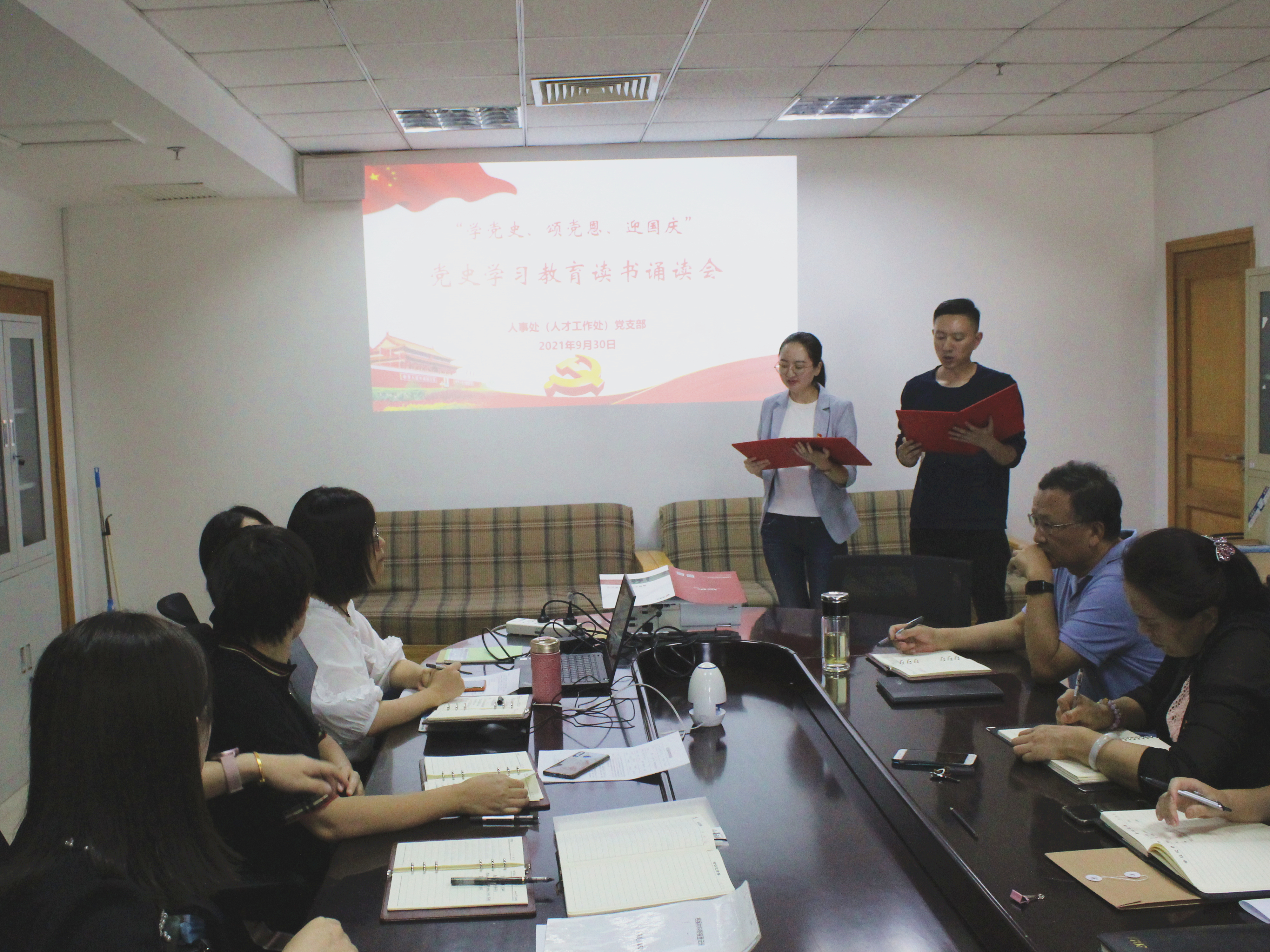 9月30日下午,yl8cc永利官网(人才工作处)开展“学党史、颂党恩、迎国庆”党史学习教育读书诵读会。