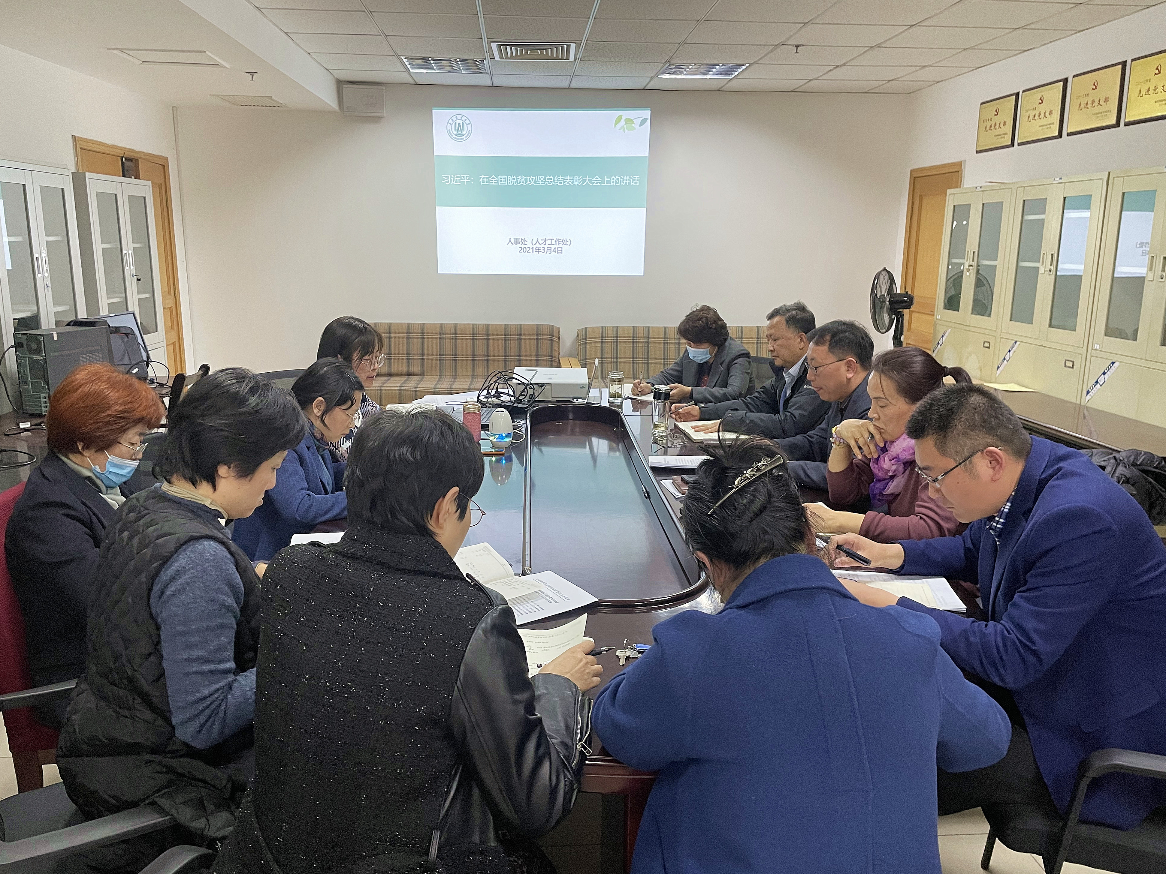 会上,组织全体党员集中观看了《习近平在全国脱贫攻坚总结表彰大会上的讲话》,并结合自身工作交流了心得体会。全体党员一致表示,要认真领会脱贫攻坚精神,立足本职,真抓实干,以教职工切身利益为出发点,做好教职工服务工作,努力营造干事创业的良好氛围。会议传达了机关党委关于2021年政治理论学习的要求,全体党员要将集中学习和个人自学相结合,进一步提升理论水平。会议还集体学习了国家、山东省及学校关于干部兼职的相关政策文件。