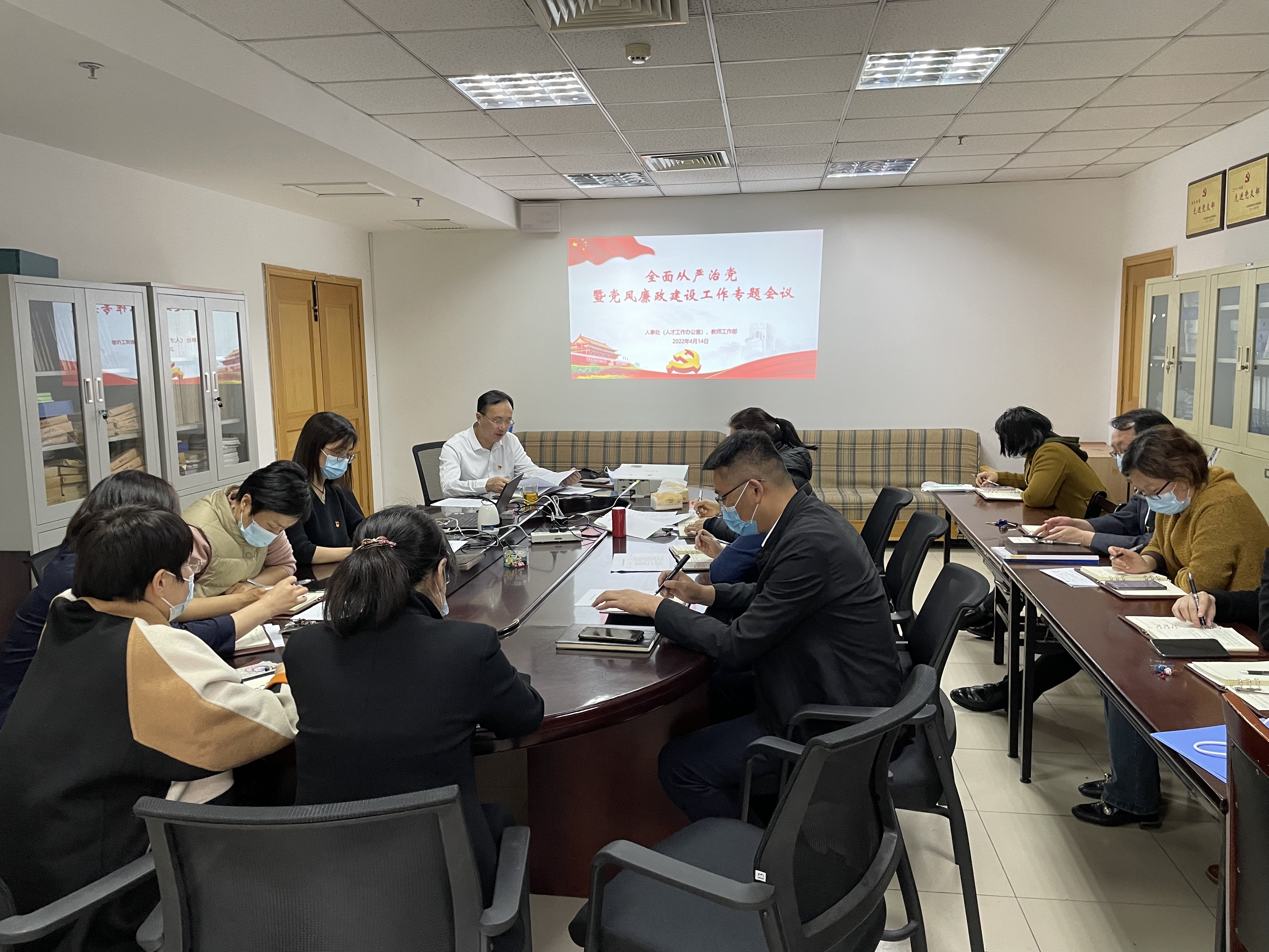 2022年4月14日,yl8cc永利官网(人才工作办公室)、教师工作部召开全面从严治党暨党风廉政建设工作专题会议,全体教职工参加。