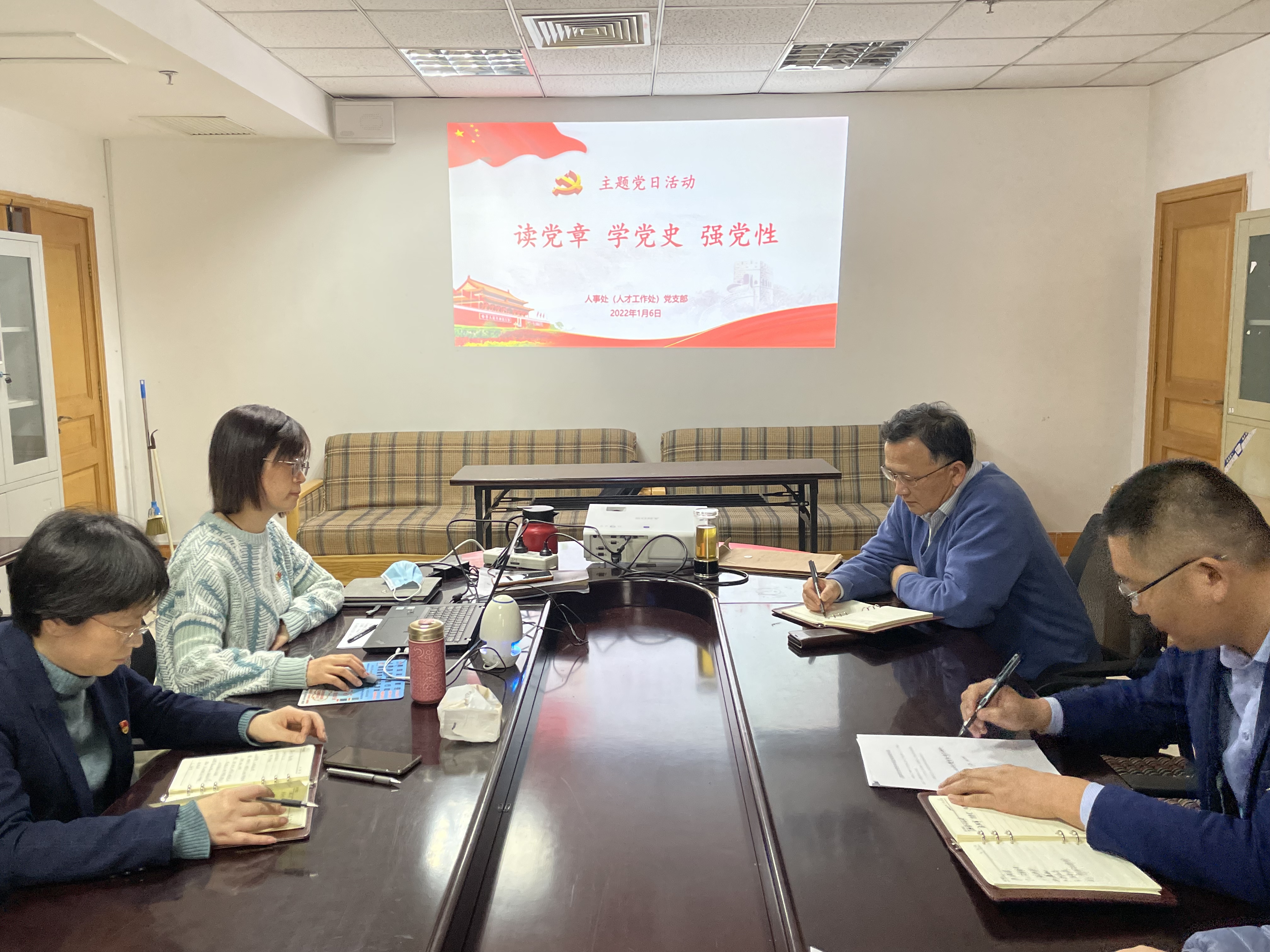 2022年1月6日下午,yl8cc永利官网(人才工作处)党支部开展“读党章、学党史、强党性”主题党日活动,全体党员参加。