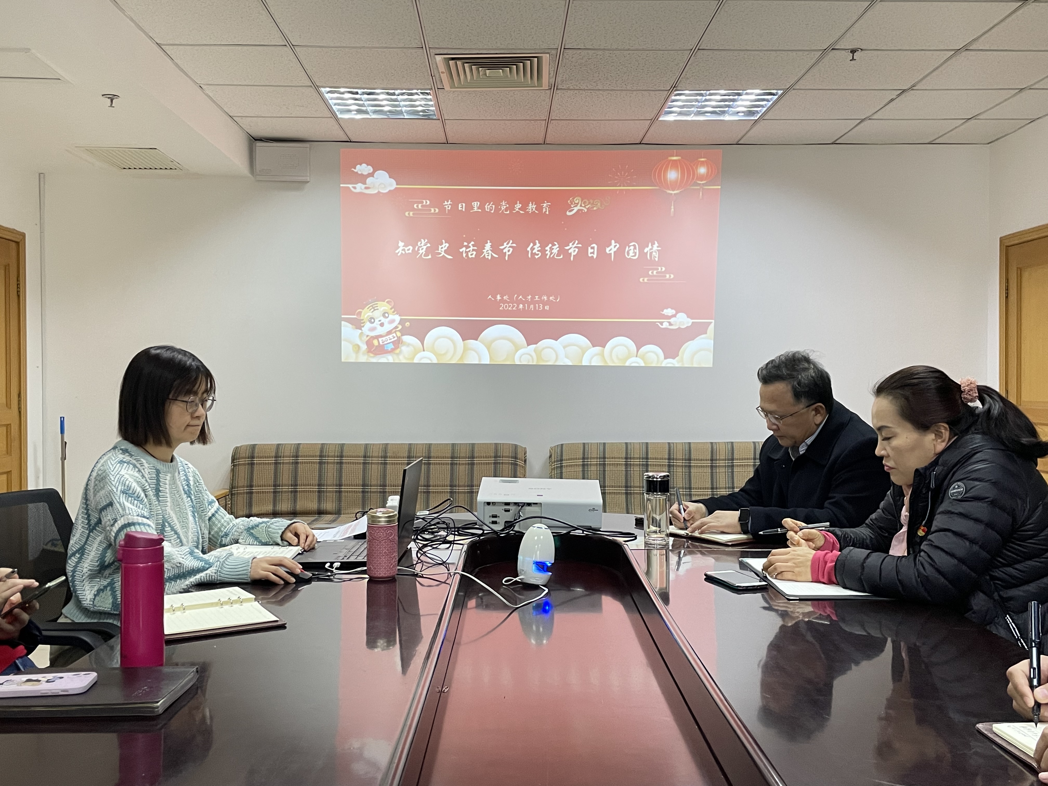 2022年1月13日下午,yl8cc永利官网(人才工作处)围绕节日里的党史教育,开展“知党史 话春节 传统节日中国情”活动,全体教职工参加。
