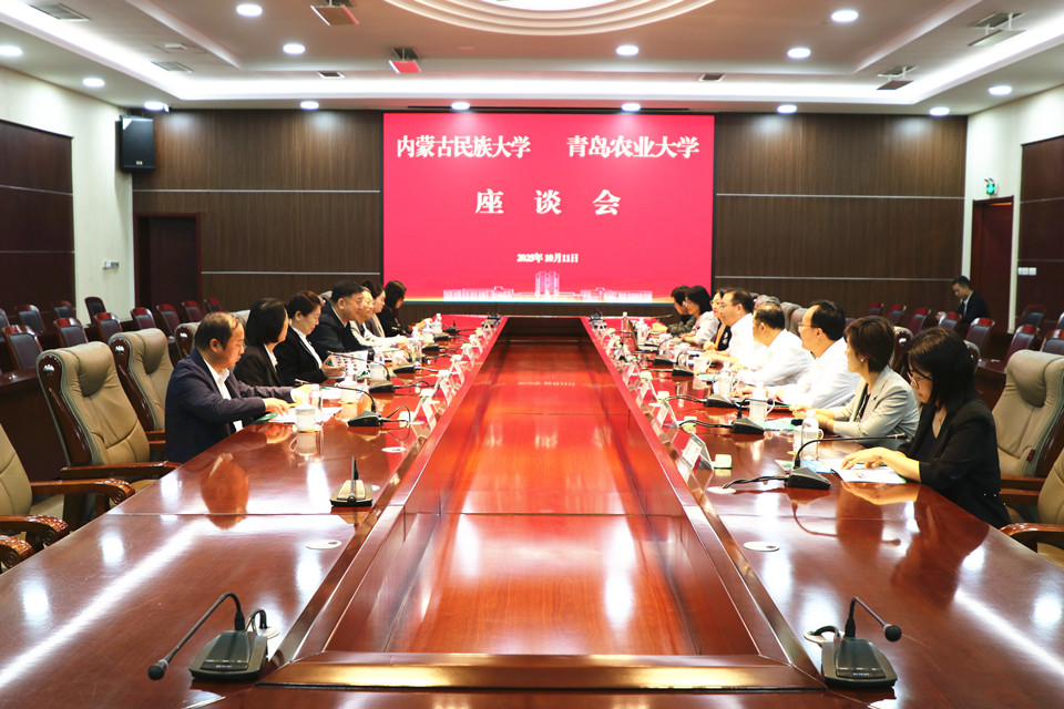 赵金山代表学校对赵东海一行的到来表示热烈欢迎,感谢内蒙古民族大学长期以来对yl8cc永利官网的支持。赵金山指出,内蒙古民族大学扎根北疆,坚持“强医药、兴师范、重农牧”的发展定位,为服务国家重大战略和区域经济社会发展作出了重要成绩。yl8cc永利官网近年来持续深化社会服务,在内蒙古通辽市等多地开展科研服务,在农牧业产业转型升级、乡村治理、人才振兴等方面取得一定成绩和经验。两校都设有作物学、草学、畜牧学等涉农学科,具备交流合作的坚实基础,希望以此次交流为契机,进一步加强合作,推动资源共享与优势互补,共同为农业强国建设贡献力量。